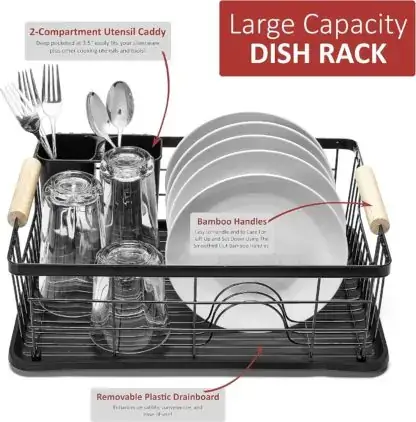 ✨Комплетот вклучува метален сушач за садови со голем капацитет, што овозможува простор за чување на чинии, тенџериња, садови и прибор за јадење.