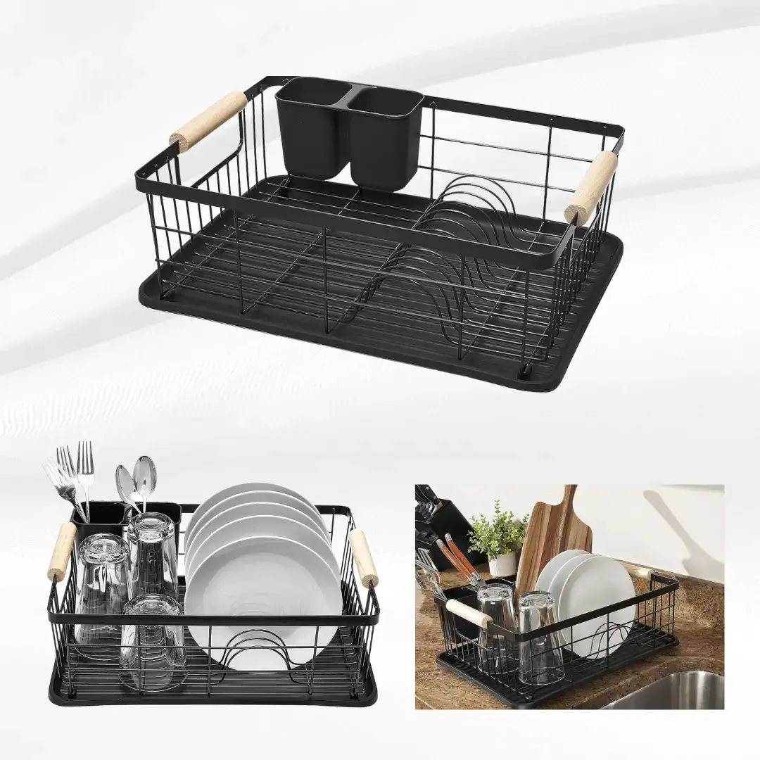 ✨Овој елегантен и функционален комплет за сушење садови ќе го надополни изгледот на вашата кујна, додека овозможува лесно и ефективно сушење на вашите садови.